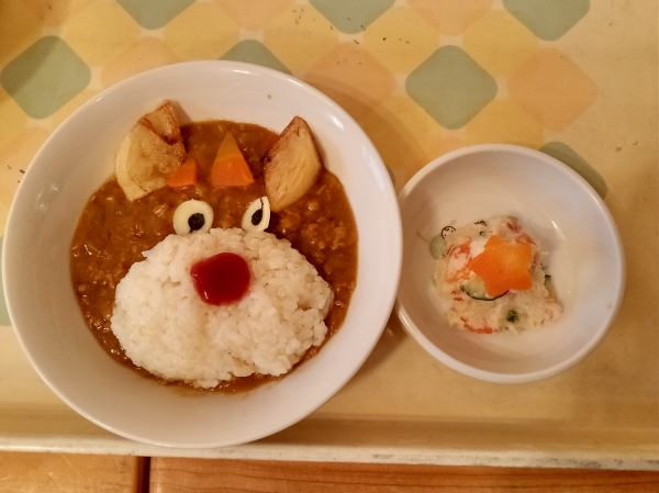 今日の給食メニューは「トナカイカレー&ツリーサラダ&コーンスープ」でした♪